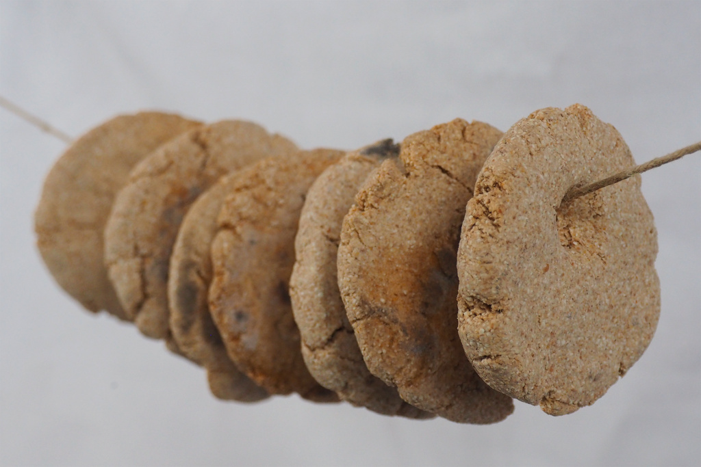 Ebenfalls hochwissenschaftlich zu und her geht es beim Projekt PlantCult, das sich der Lebensmittelherstellung und -verarbeitung in prähistorischer Zeit widmet. Ein Zweig der Forscher*innen ist den Getreideprodukten auf der Spur. Ihnen verdanken wir neue Untersuchungen und Erkenntnisse über Brot und Brötchen der Pfahlbauer*innen. In unseren Blogs picken wir uns die besten Krümel aus der Forschungsliteratur, bereiten sie auf und servieren sie dir bekömmlich. Beim Recherchieren sind wir auf zwei Artikel gestossen, in denen ein Brötchen und zwei Fladenbrote vorgestellt werden. Das Brötchen wurde vor 150 Jahren bei Ausgrabungen am Mondsee in Österreich gefunden und im Pfahlbaumuseum Mondsee als «Urknödel» ausgestellt. Für die Untersuchungen wurde es der Vitrine entnommen, unters Mikroskop gelegt und durch den Computertomographen geschickt. Was das Stereomikroskop zeigte, sieht zum Reinbeissen aus: eine lockere, porige Teigstruktur, wie sie sich für Brot gehört, das mit Hefe oder Sauerteig gebacken wurde. Worauf wir heute aber gern verzichten, ist das, was die Mikro-Computertomographie offenbarte: Der Teig enthält auch Steinkörnchen. Es ist Abrieb der Mahlsteine, auf denen das Getreide gemahlen wurde. Sie sind mit ein Grund, weshalb die Zähne der Pfahlbauer*innen oft sehr stark abgenutzt waren. Über 40-Jährige kauten oftmals bereits auf dem Dentin, der inneren Zahnsubstanz. Vollkornbrot in Ehren, aber auf die steinernen Ballaststoffe verzichten wir heute gerne. Andererseits führte der rasche Abrieb der Zähne dazu, dass die Menschen der Jungsteinzeit kaum Karies hatten – denn bevor sich die Bakterien auf der Oberfläche festsetzen konnten, war der Schmelz schon wieder abgeschmirgelt.