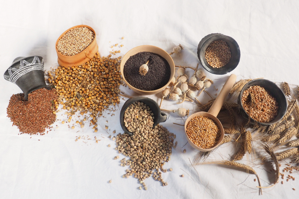 Kreiere trotz kargem Warenkorb sättigende Hauptspeisen. Wähle als Hauptzutat eine oder mehrere Getreidearten, die im neolithischen Lebensmittelpaket enthalten waren.