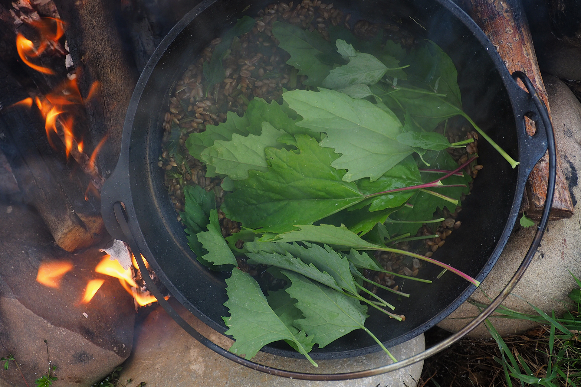 Gar nicht einfältig ist der Geschmack dieses Einkorn-Eintopfes. Er besteht lediglich aus den Ur-Getreidekörnern Einkorn und einigen frischen Wildpflanzen, die dem Gericht einen überraschend intensiven Geschmack verleihen. In Kombination mit würzigem Käse und ein paar Scheiben Rauchfleisch ist dies alles andere als eine einfache Mahlzeit.