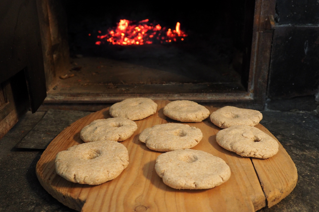 Aus reinem Gerstenmehl einen zusammenhängenden, elastischen Teig herzustellen ist nicht möglich. Deshalb empfehlen wir dir eine Mischung mit Weizen, Emmer oder Einkorn, die gut binden. Wird mehr als zur Hälfte Gerstenmehl verwendet, verhält sich der Teig wie ein störrischer Mürbeteig, der nur mit Feingefühl in die gewünschte Form gebracht werden kann. Auswallen oder allzu sehr flach klopfen funktionieren nicht. So ergeben sich automatisch Fladenbrote, die den Originalfunden im Aussehen sehr nahe kommen.