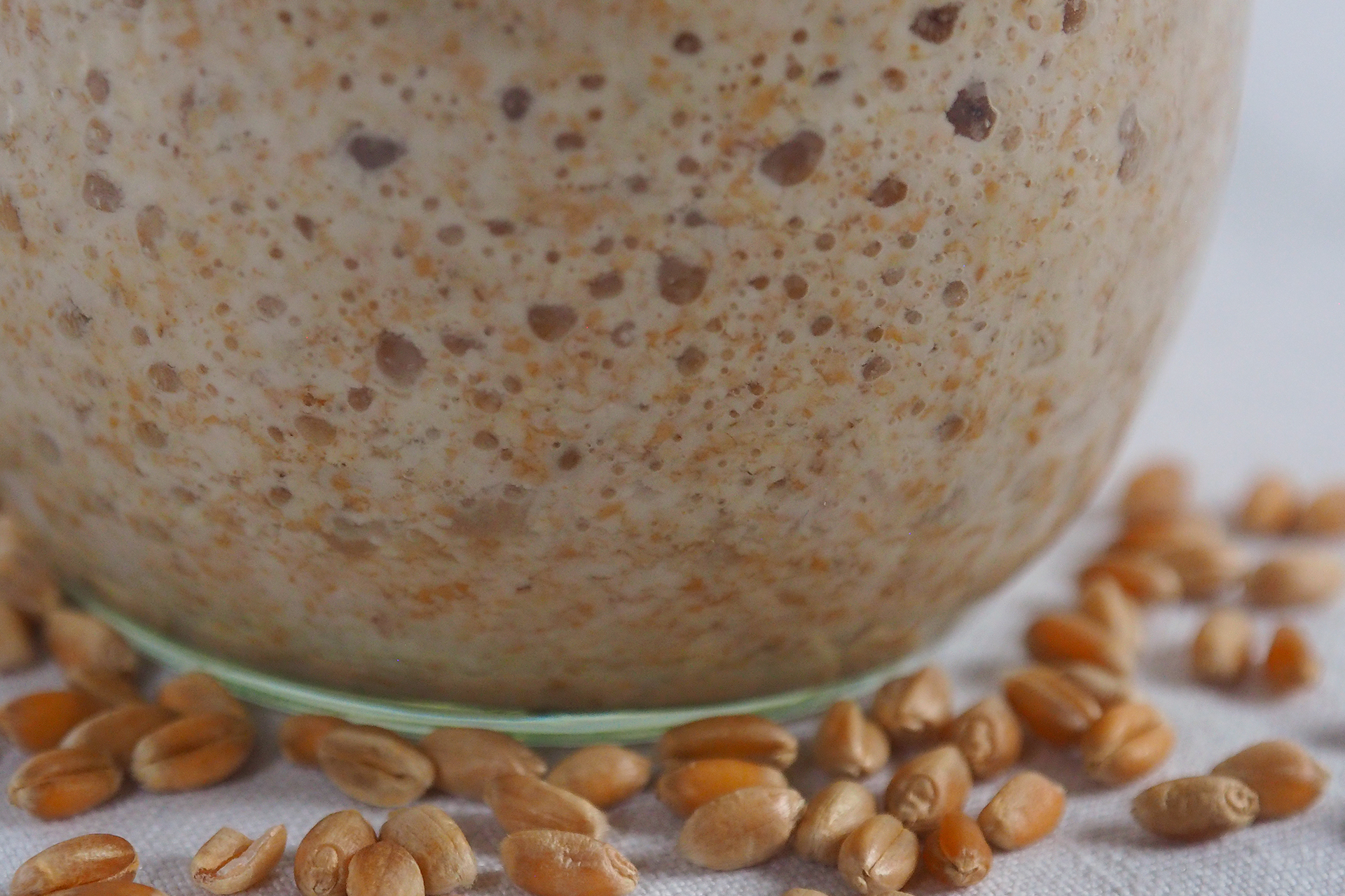 Sauerteig-Anstellgut mit Mehl und Wasser ansetzen.
